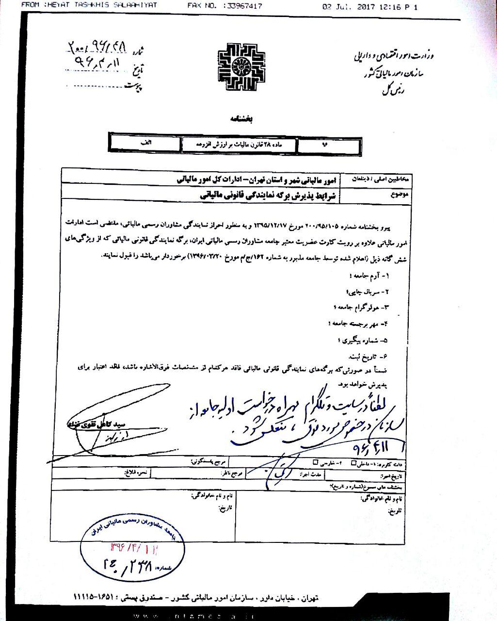باتوجه ماده ۲۸ قانون مالیات بر ارزش افزوده و بخشنامه قبلی ، شرایط پذیرش برگه نمایندگی قانونی مالیاتی اعلام شد.
