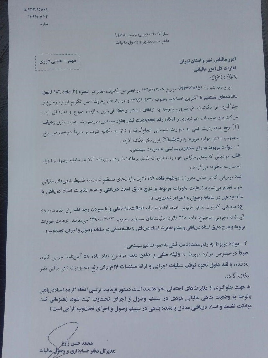 مضافا اینکه بخشنامه رفع محدودیت ثبتی شرکتهایی که ترتیب پرداخت بدهی را داده اند نیز صادر شد.