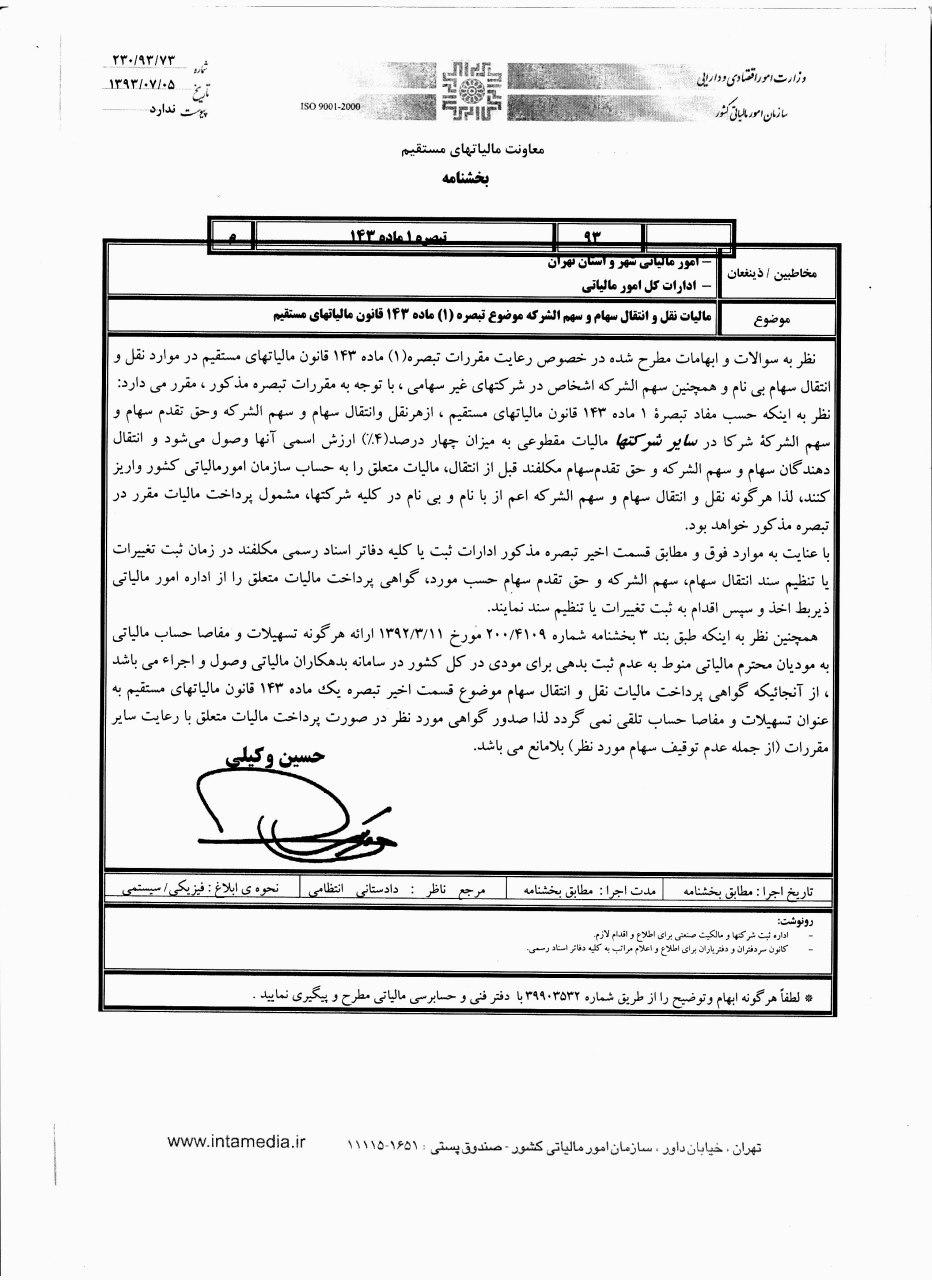 مجاز بودن نقل و انتقال سهام و صدور مفاصاحساب پرداخت مالیات نقل و انتقال سهام برای بدهکارانی که ترتیب پرداخت بدهی را داده اند، طی بخشنامه سازمان امورمالیاتی تشریح شد.
