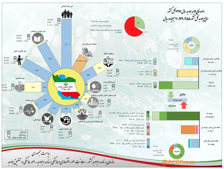 همچنین در بخش مصارف نیز ۷۵ درصد مصارف دولت در بخش «هزینهها»، ۱۶ درصد در بخش تملک داراییهای سرمایه ای و ۹ درصد نیز برای مصارف تملک داراییهای مالی پیش بینی شده است.