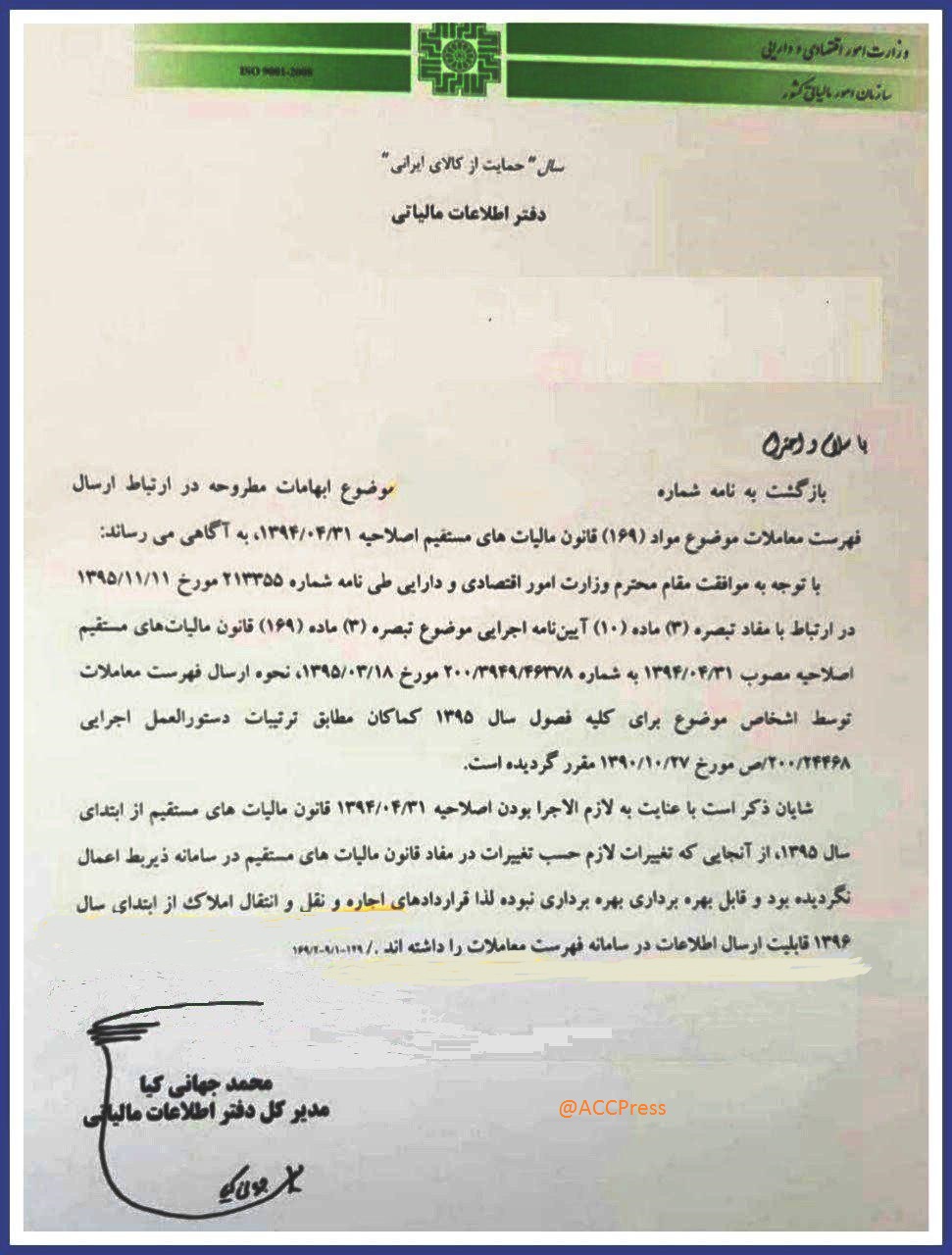 اظهارنظر درباره ابهامات مطروحه در ارتباط با ارسال فهرست معاملات فصلی آيین نامه هاي قانون مالیاتهاتازه های امور مالیاتی در شهریور 30, 1397 0 1,636 به اشتراک گذاری مدیرکل دفتر اطلاعات سازمان امورمالیاتی ، درباره ابهامات مطروحه در ارتباط با ارسال فهرست معاملات فصلی موضوع ماده ۱۶۹ مربوط به اجاره املاک و خرید و فروش املاک توضیحاتی ارائه کرد. [br] [br] [hr] ارسال فهرست معاملات فصلیماده 169 اجاره املاک و خرید و فروش املاکمعاملات فصلی اجاره املاک و خرید و فروش املاک 0 1,636 به اشتراک گذاری