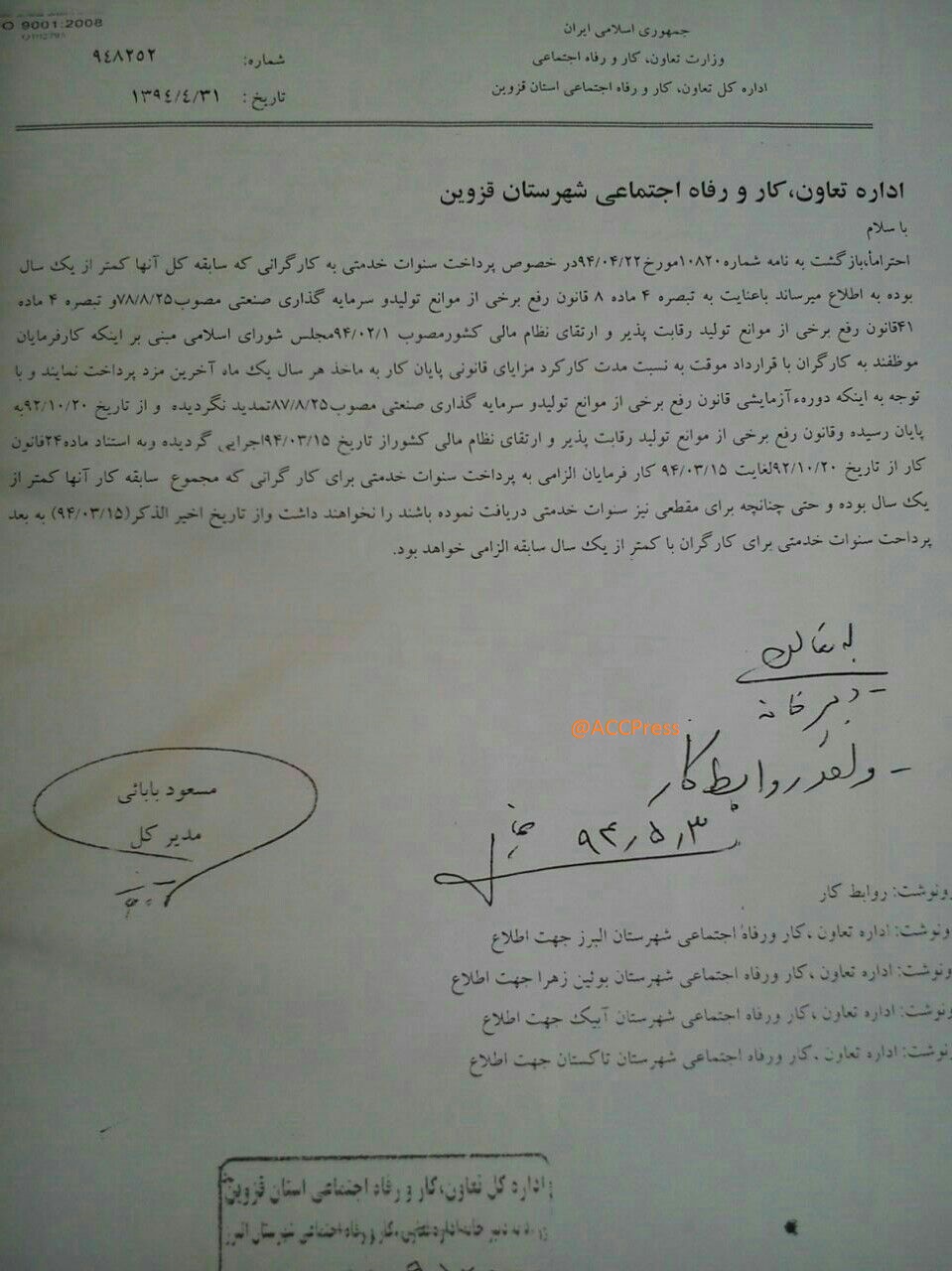 نامه شماره ۹۴۸۲۵۲ مورخ ۹۴/۴/۳۱(تعلق سنوات خدمت کمتر اریکسال) سایر قوانینقانون كار و بخشنامه مرتبط در اردیبهشت 22, 1398 0 2,337 به اشتراک گذاری تعلق سنوات خدمت کمتر اریکسال و به نسبت مدت کارکرد از ۱۵ خرداد ۱۳۹۴ به بعد الزامی است. [br] [br] [hr] اصلاح ماده 7 قانون كارتاریخ تعلق سنوات خدمت کمتر اریکسالتعلق سنوات خدمت کمتر اریکسالسنوات به نسبت مدت کارکردسنوات پایان خدمتسنوات خدمت كمتر از يكسالسنوات خدمت کمتر اریکسالسنوات نسبت مدت کارکردشماره 948252نامه شماره 948252 0 2,337 به اشتراک گذاری