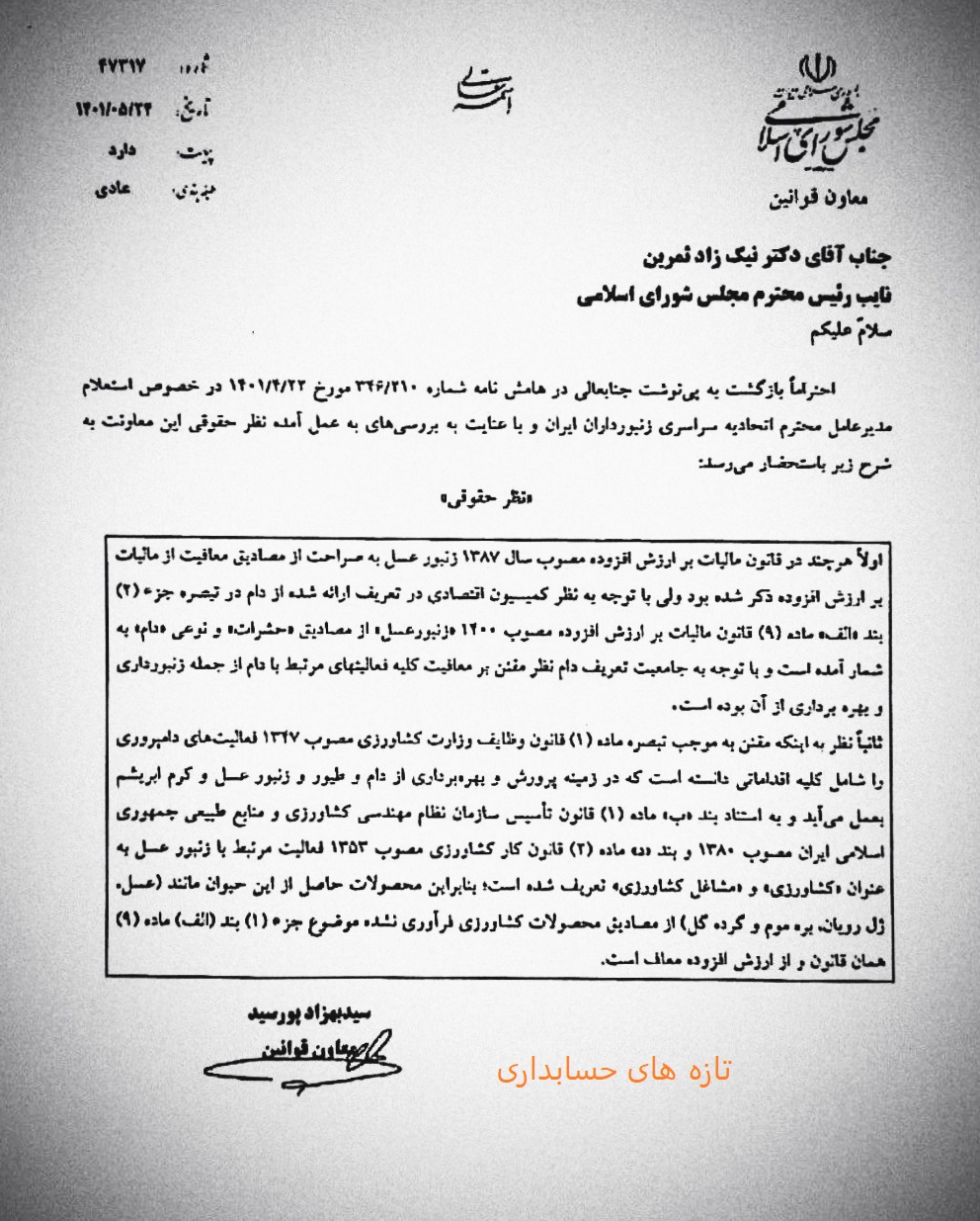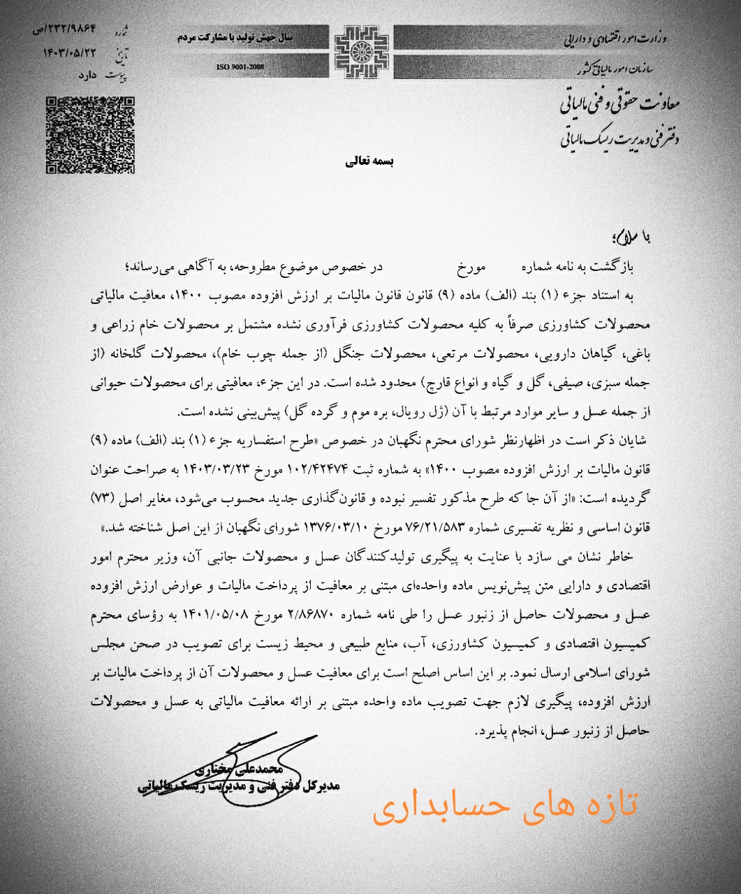 تشریح معافیت مالیات بر ارزش افزوده عسل و محصولات جانبی آيين نامه ماليات ارزش افزودهتازه های امور مالیاتی در شهریور 29, 1403 0 729 به اشتراک گذاری معافیت مالیات بر ارزش افزوده عسل و محصولات جانبی تشریح شد. شماره 232/9864شماره 47317مالیات بر ارزش افزودهمالیات زنبور عسلمعافیت مالیات بر ارزش افزوده 0 729 به اشتراک گذاری