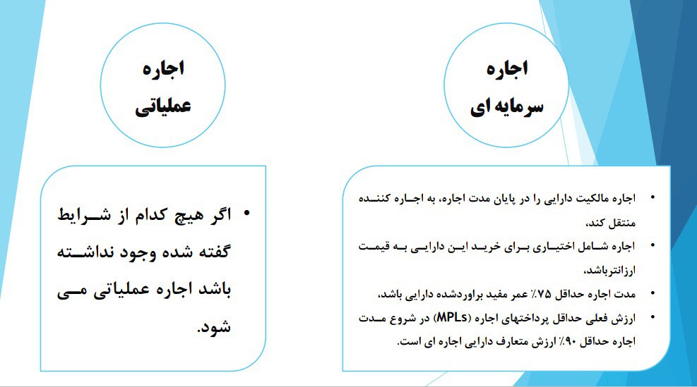 تفاوت های اجاره سرمایه ای و عملیاتی را درقالب تصویر زیر ببینید: