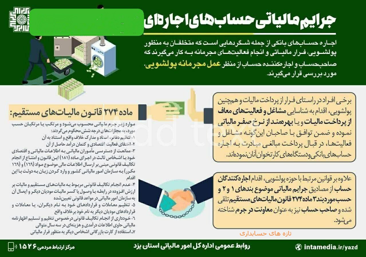 جرایم مالیاتی حساب های اجاره ای اخبار امور مالياتياخبار مجامع حرفه اي در دی 14, 1403 0 202 به اشتراک گذاری جرایم مالیاتی حساب های اجاره ای بدین شرح می باشد: جرایم مالیاتیحساب های اجاره ایمسدودیت حساب های اجاره ای 0 202 به اشتراک گذاری
