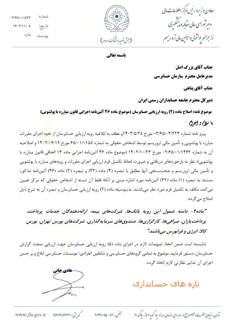 دامنه شمول شرکتهای مشمول قانون مبارزه با پولشویی تغییر کرد.