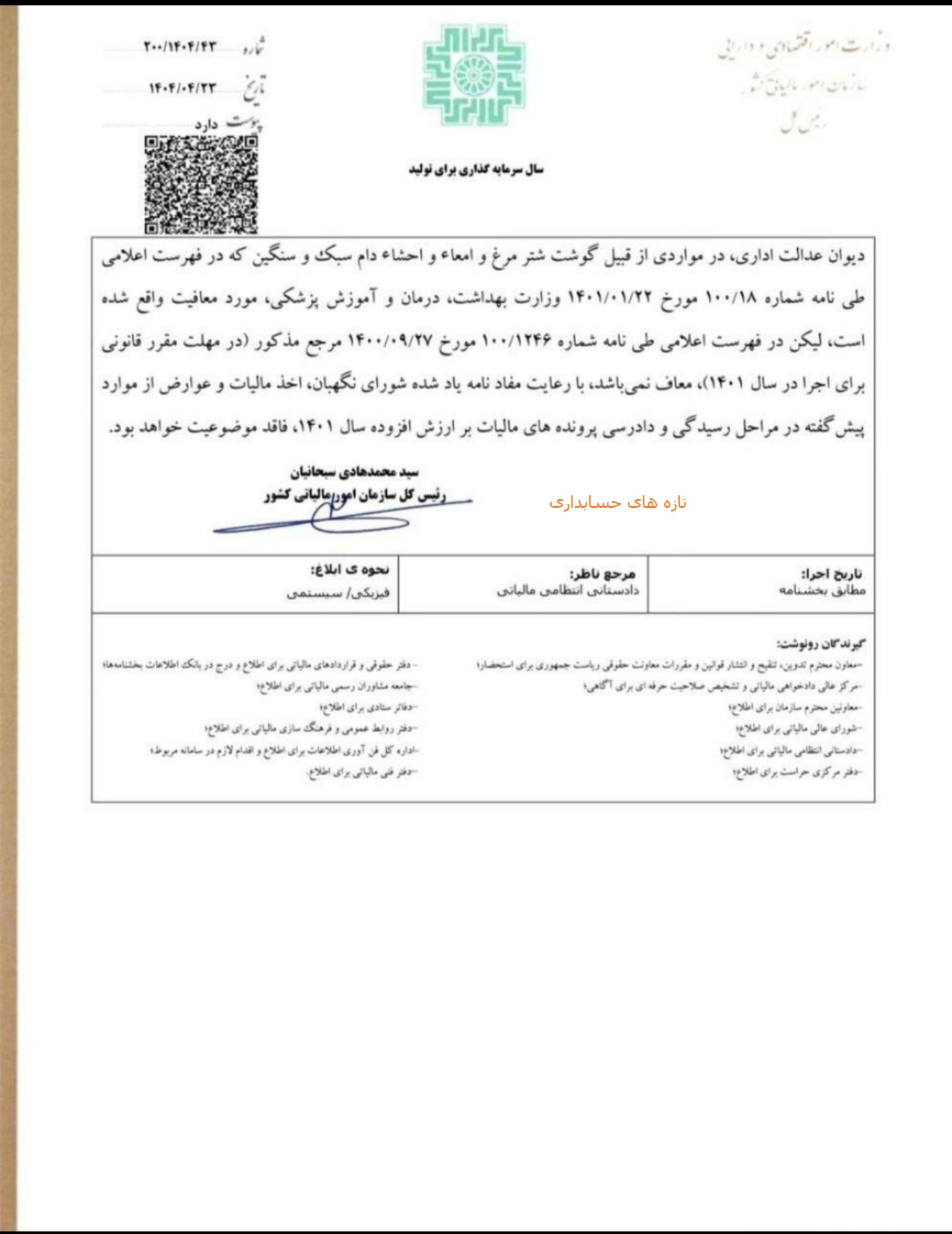 بخشنامه ۲۰۰/۱۴۰۴/۴۳ تاریخ ۱۴۰۴/۰۴/۲۳ موضوع اصلاح و تبیین مقررات بند (۲) بخشنامه شماره ۲۰۰/۱۴۰۳/۴۴ مورخ ۱۴۰۳/۱۰/۲۹ در خصوص جزء (۴-۵) بند (الف) ماده (۹) منتشر شد.