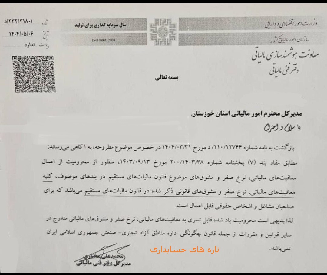 محرومیت از اعمال معافیت های مالياتی، نرخ صفر و مشوقهای قانونی ذکر شده در قانون مالیات های مستقیم می باشد. … قابل تسری به معافیت های مالیاتی، نرخ صفر و مشوق های مالیاتی مندرج در سایر قوانین و مقررات از جمله قانون چگونگی اداره مناطق آزاد تجاری-صنعتی نمی باشد.