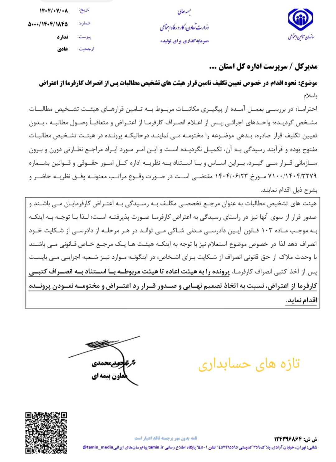 این ابلاغیه نقش مهمی در یکپارچگی فرایند دادرسی بیمه ای و جلوگیری از بلاتکلیفی پرونده های کارفرمایی دارد.