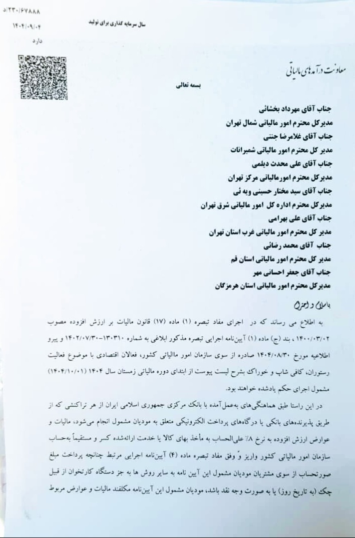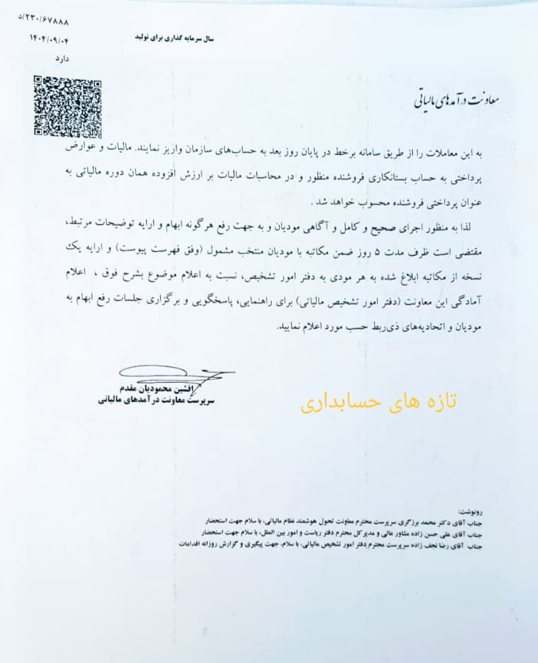 نحوه کسر ٨ درصد مالیات بر ارزش افزوده معاملات آيين نامه ماليات ارزش افزودهاخبار برگزیدهاخبار مجامع حرفه اي در آذر 5, 1404 0 5 به اشتراک گذاری کسر ٨ درصد مالیات بر ارزش افزوده معاملات از طريق سامانه بر خط در پایان روز بعد انجام میشود. تازه هاي حسابداريشماره 230/67888مالیات بر ارزش افزوده معاملات 0 5 به اشتراک گذاری