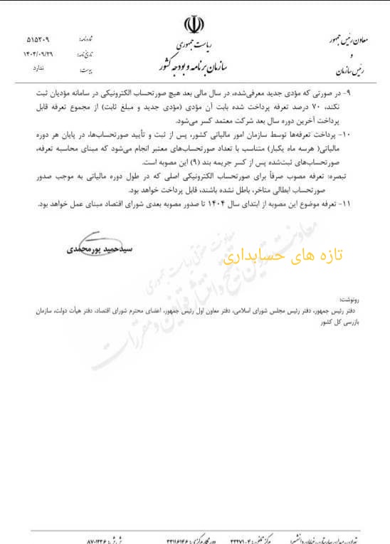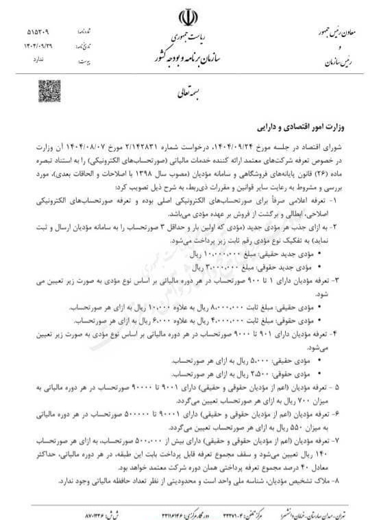 تعرفه جدید شرکت های معتمد ارائه کننده خدمات مالیاتی آيین نامه هاي قانون مالیاتهاتازه های امور مالیاتی در دی 7, 1404 0 2 به اشتراک گذاری مصوبه شورای اقتصاد در ابلاغ تعرفه شرکت های معتمد ارائه کننده خدمات مالیاتی (صورتحساب های الکترونیکی) با شماره ۵۱۵۲۰۹ در تاریخ ۱۴۰۴/۰۹/۲۹ منتشر شد. تعرفه شرکت های معتمدشماره 515209شورای اقتصاد 0 2 به اشتراک گذاری