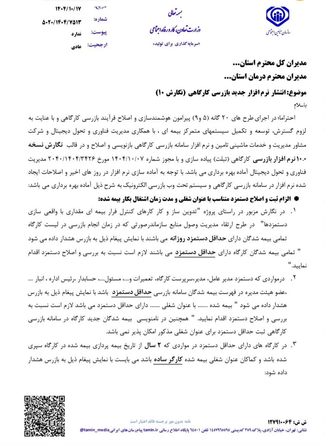 سازمان تأمین اجتماعی با انتشار نگارش جدید نرم افزار بازرسی کارگاهی عملاً فرآیند کنترل دستمزد عنوان شغلی سوابق بیمه ای و حضور کارکنان را وارد مرحله ای کاملاً داده محور و سیستمی کرده است.