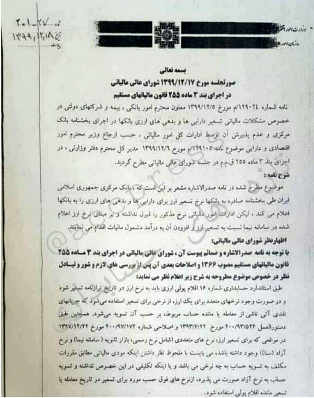 شورای عالی مالیاتی طی صورتجلسه زیر ، نحوه تسعیر دارایی ها و بدهی های ارزی بانکها را مشخص کرد.