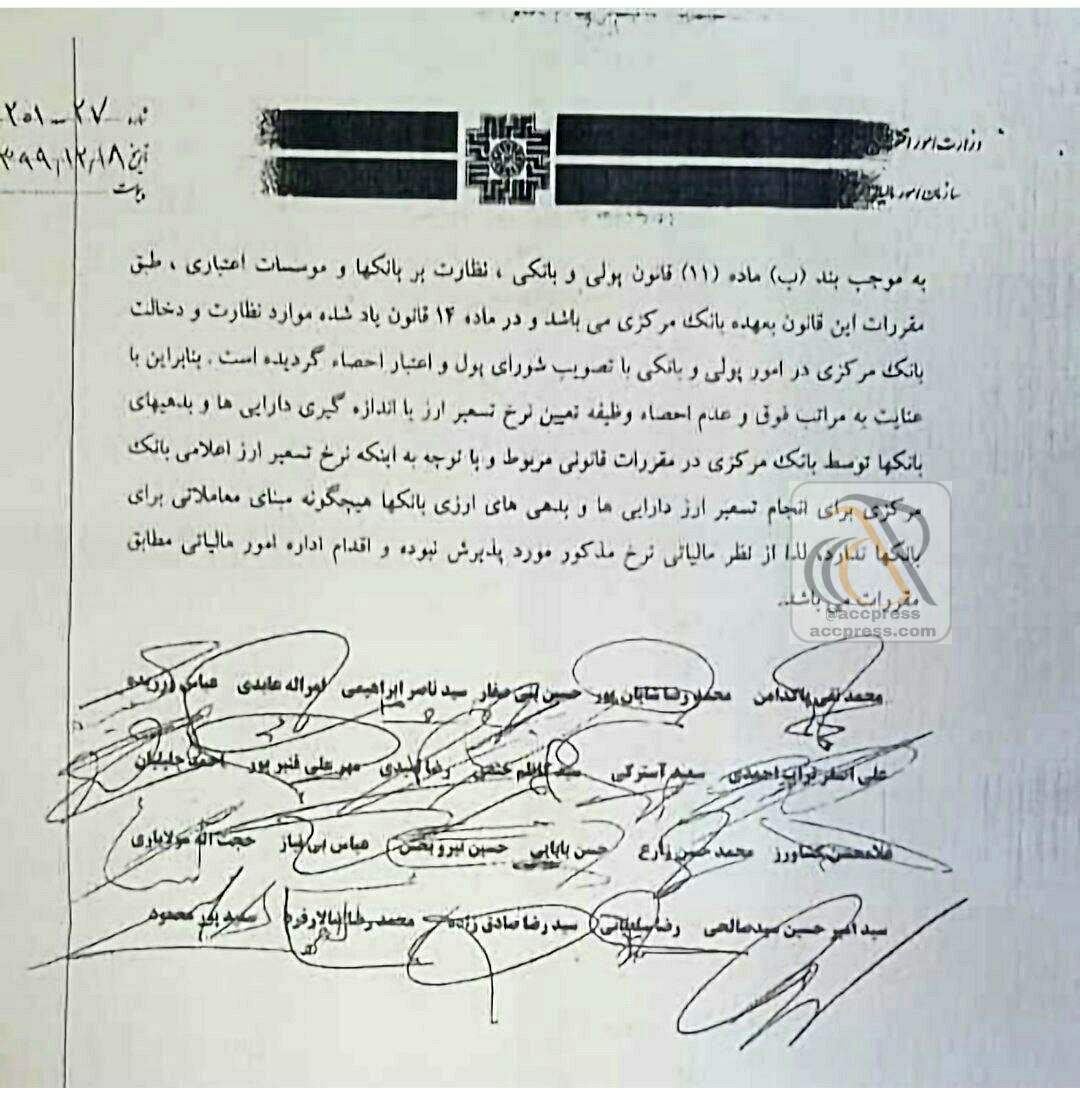 صورتجلسه ۲۷-۲۰۱ مورخ۹۹/۱۲/۱۸(تسعیر دارایی ها و بدهی های ارزی بانکها )