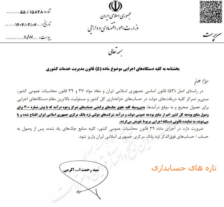 گفتنی است این بخشنامه توسط سید رحمت ا… اکرمی امضا شده و به دستگاههای اجرایی ابلاغ شده است. انتظار میرود با اجرای این بخشنامه، شفافیت و کارایی نظام مالی دولت ارتقا یابد.