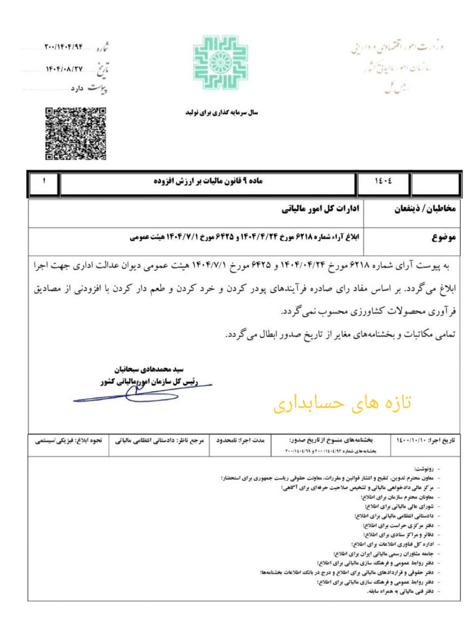 تازه های امور مالیاتی