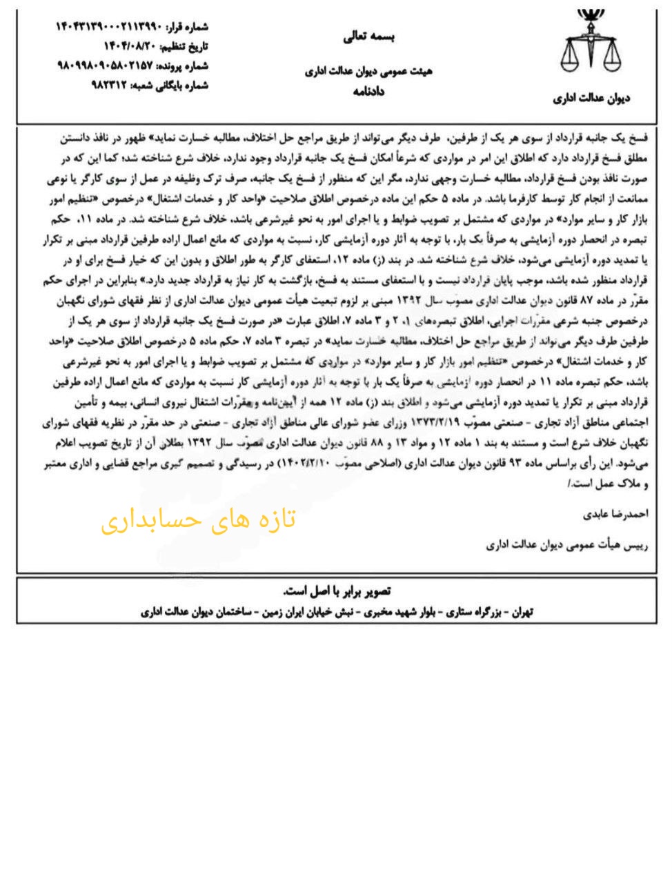 رای دیوان عدالت در خصوص قراردادهای کاری مناطق آزاد و پارکهای فناوری